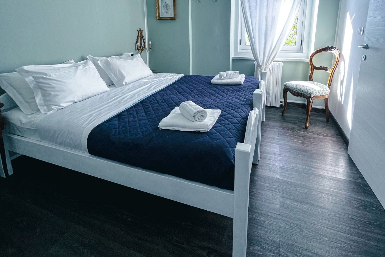 Sempre sul lato ovest della Villa, questa camera gode di una bella vista sul mare. Accogliente e raccolta.